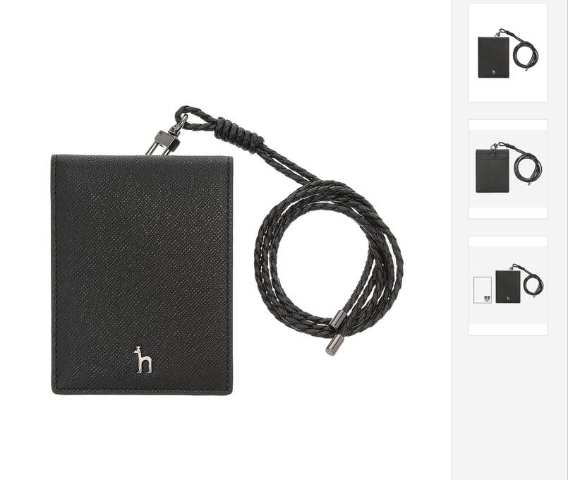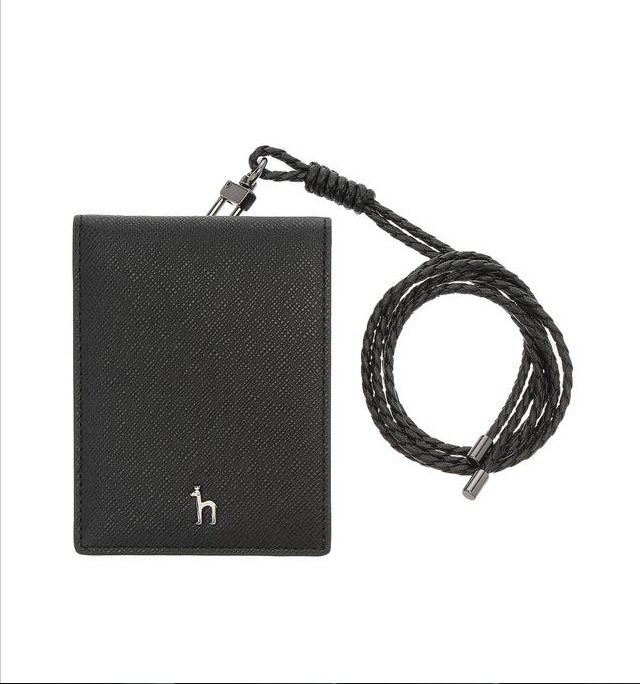 블랙 컬러에 안감이 블루 컬러로 배색되어 산뜻한 느낌을 연출하는 목걸이형 카드지갑입니다.