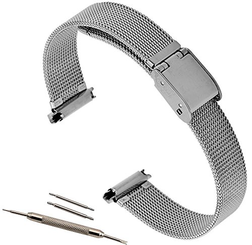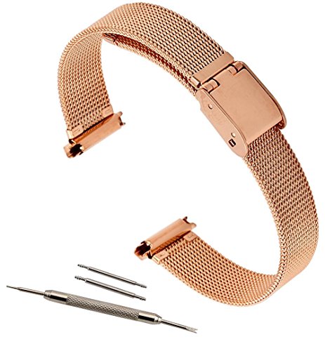 10-14mm TC Adjustable Metal Mesh Solid Bucle Watch Band Ladies