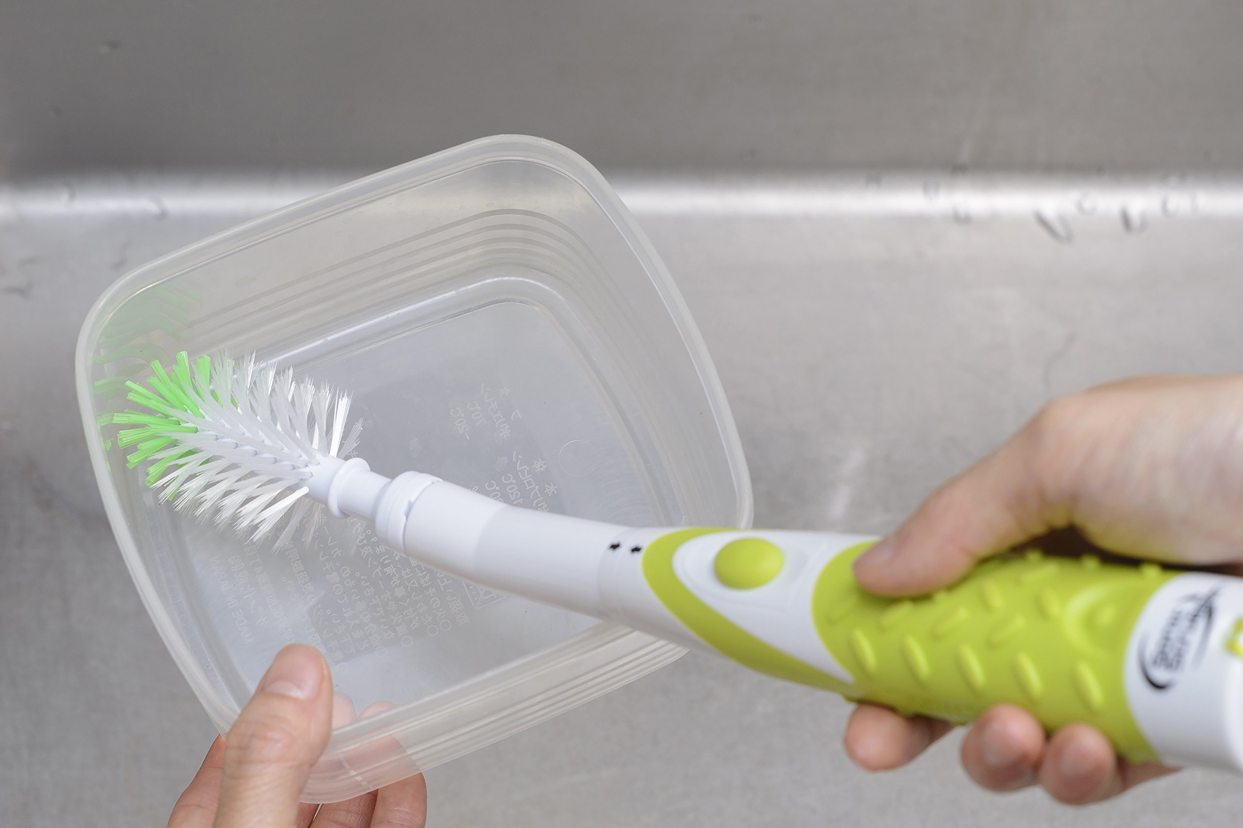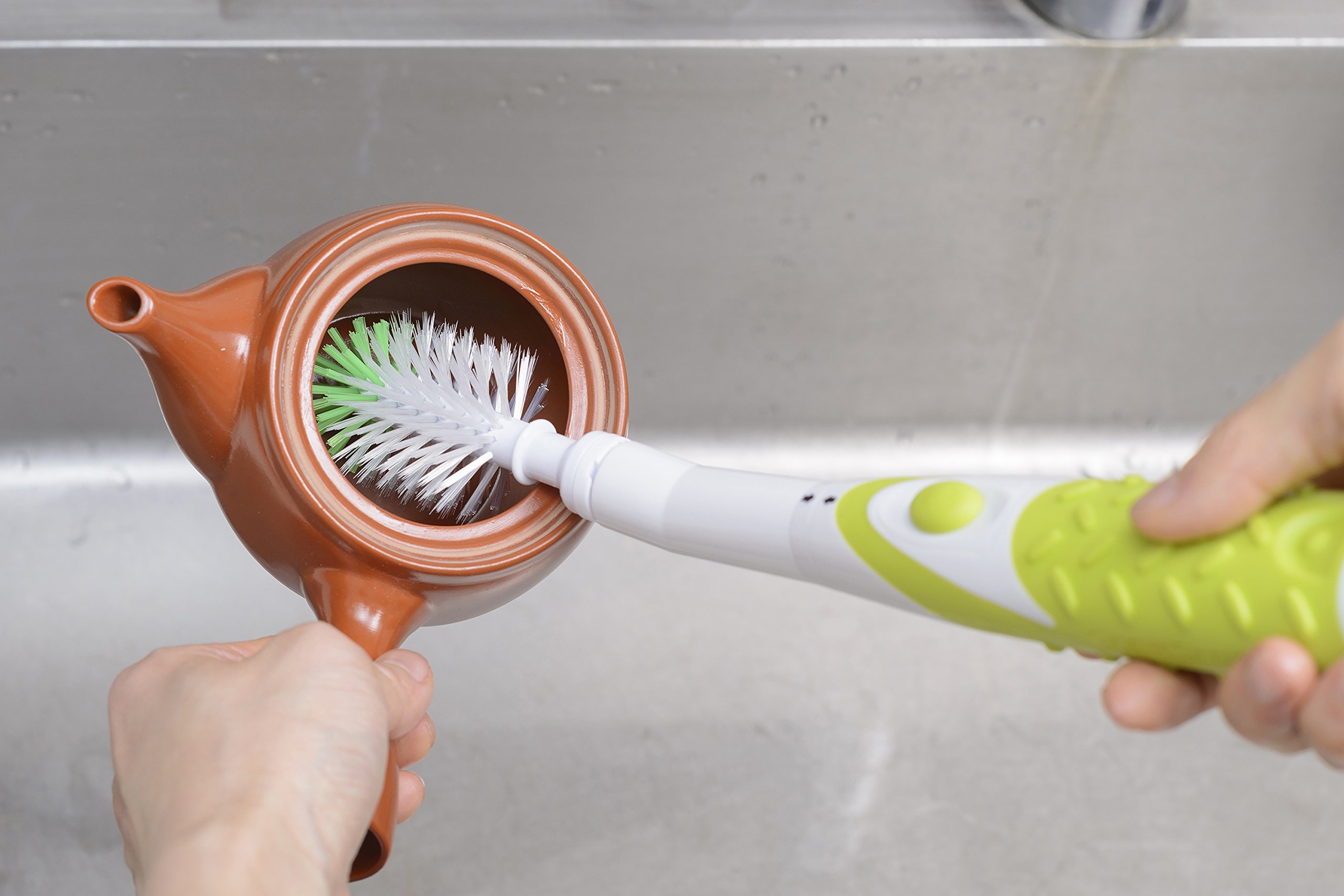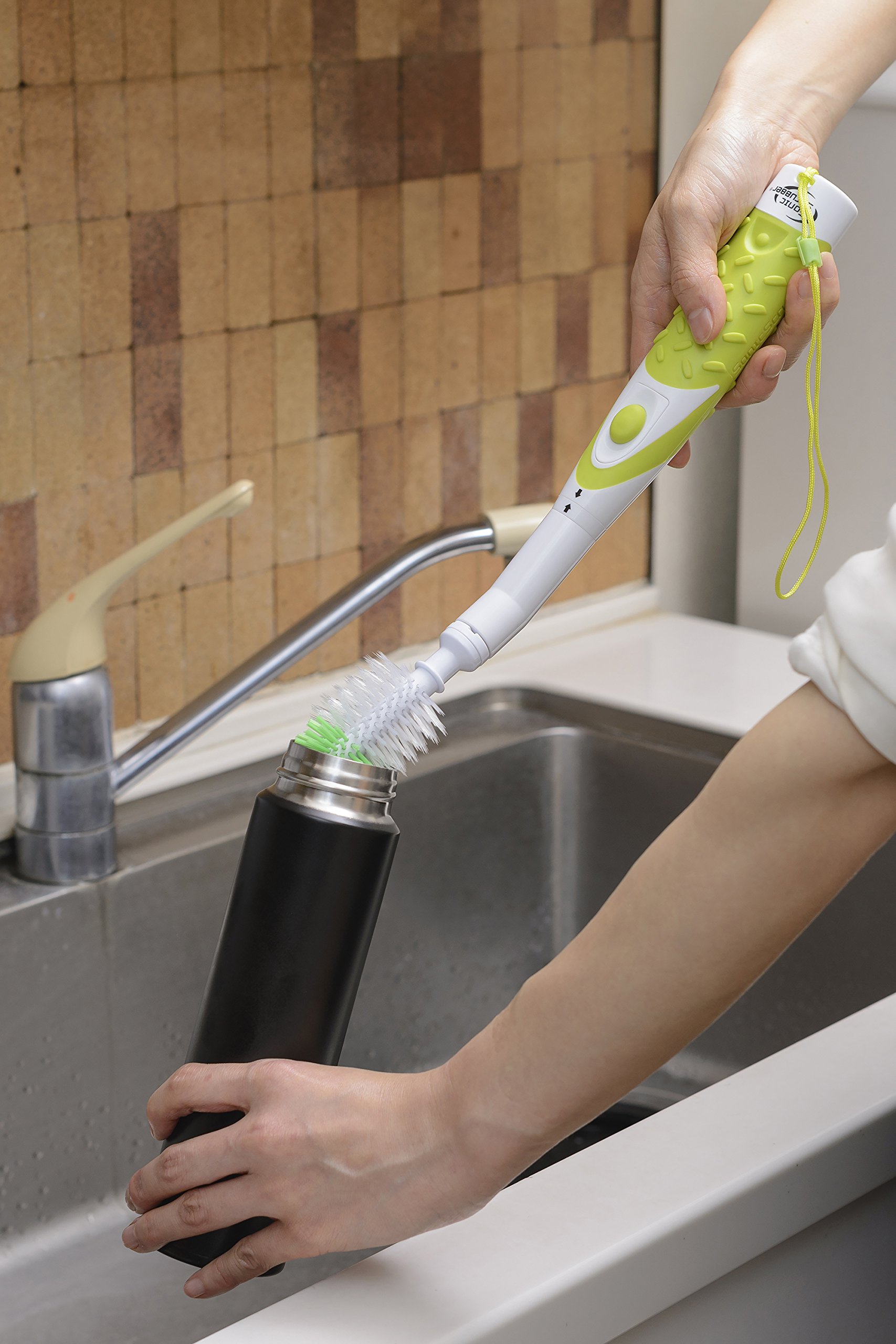 - Electric kitchen long brush made in Japan that can easily remove dirt that hardly falls in deep water bottles and barley tea bottles.