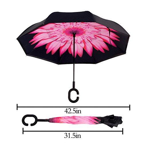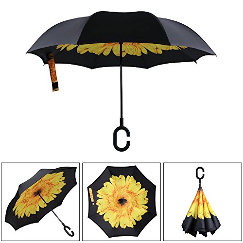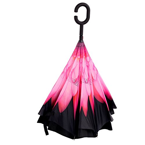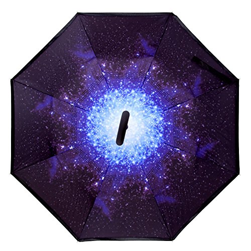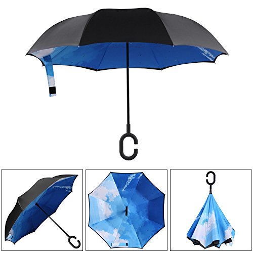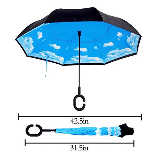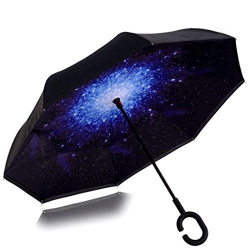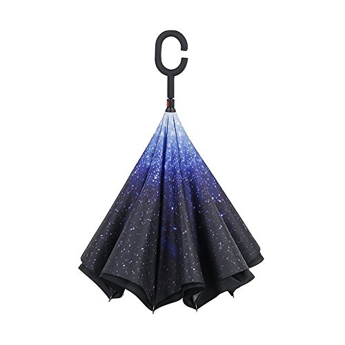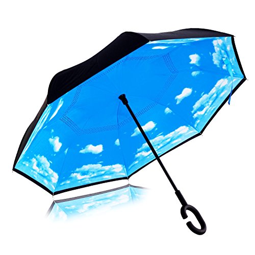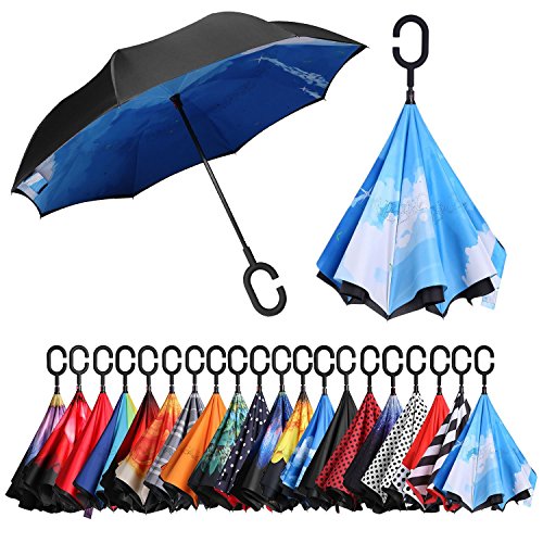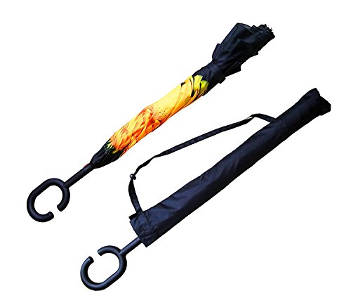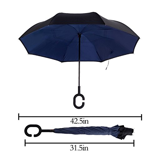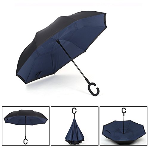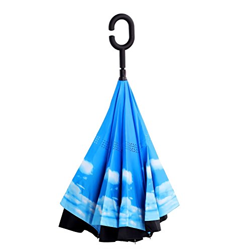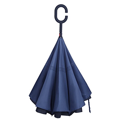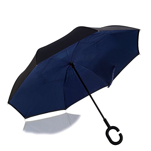 User-friendly C-shape Handle Design: C-shape handle design make your hands free. Cross the C-shape handle over your arm, made your hands free for holding a baby, bag or mobile. Design especially for Driver: When get in and out of your car without getting soaked, because the new design can escort you easily in a perfect opening/closing angle. Maximum Wind-Resistance: Designed with a double layered vented canopy for maximum wind-resistance. Allows for the wind to be effectively channeled through the canopy vents, effectively preventing any flipping up due to wind pressure. Guaranteed to keep you fully dry while withstanding powerful gusts of up to 55 mph without turning inside out. Easy to Operate Manually and Safe to Use: With a simple click of the embedded button, you can open and close the umbrella in confined spaces when entering or exiting a building or car and it's less awkward and more safer to open and close when in crowds, since the danger to poke in people's eyes has been removed by the design. 0 |