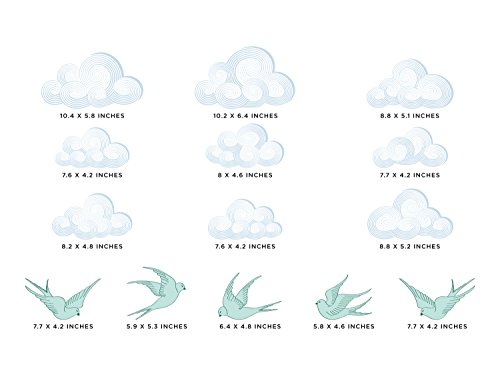 - Product Dimensions: Clouds (range) - 7.4" x 4.2" - 10.2" x 6.4", Birds (range) - 5.8" x 4.6" - 7.7" x 4.2". Please see image for exact dimensions of each item