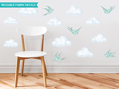 Sunny Decals Modern Clouds Fabric Wall Decals with Birds (Set of 9)