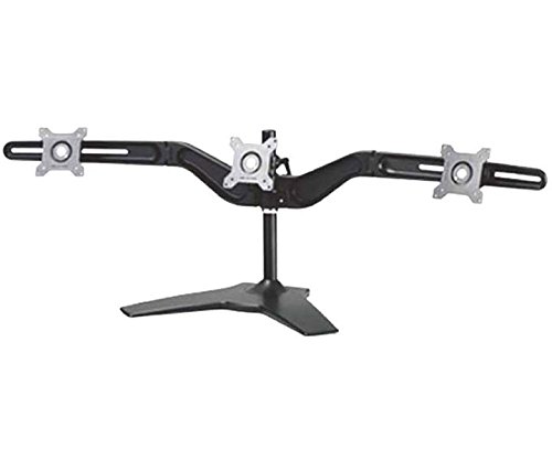 -. Feature : • Each monitor can be placed at a different height to accommodate different sized monitors / • All three monitors have 360 degree rotation (meaning landscape, portrait, or anything in-between) / • Also included is a +/- 20 degree tilt in any direction Individually for ALL 3 Monitors, ensuring maximum user comfort / • Height adjustable, with a maximum height of 13" from the desk to the center of the mounting device
