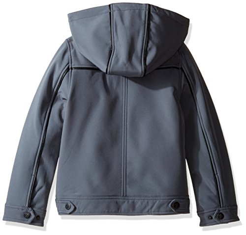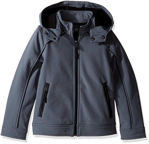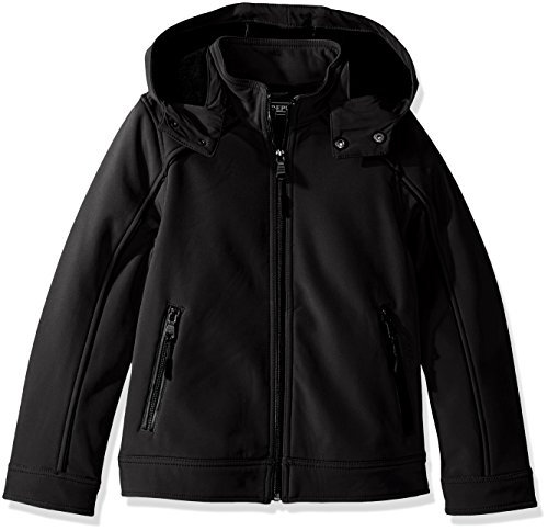 97 percent polyester, 3 percent spandex zipper closure soft-shell water resistant material removable zippered hood with snaps at chin full fleece backing classic, neat look great for chilly weather and mild rainFeature