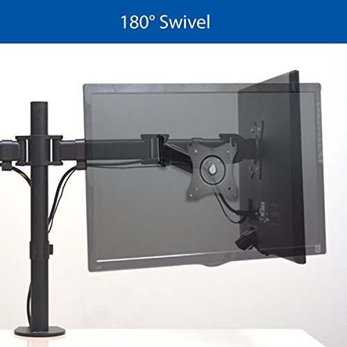 -. Feature : 360 Degree rotation, 180 Degree swivel and 45 Degree tilting for any viewing perspective / Freely adjusting height for an optimal ergonomic position / Both grommet and desk clamp mounting available / Cable clips keep cables organized and protected