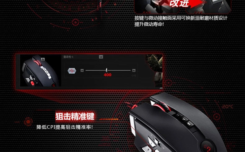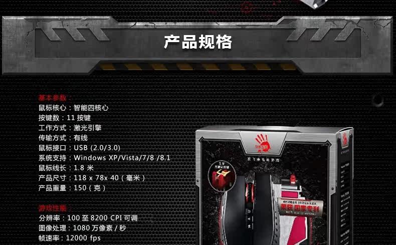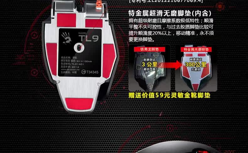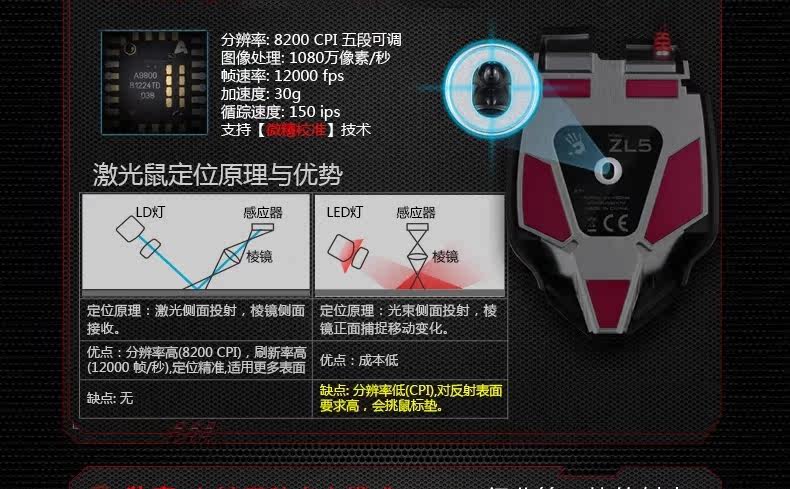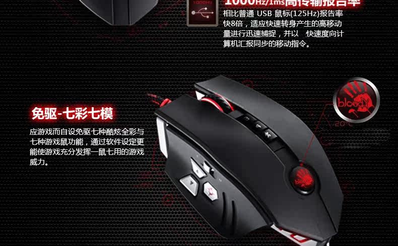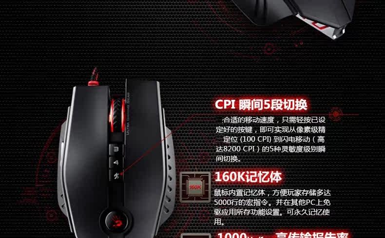 双飞燕 血手幽灵ZL50 宏编程激光智能有线游戏鼠标 电竞光微动