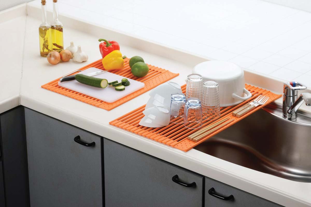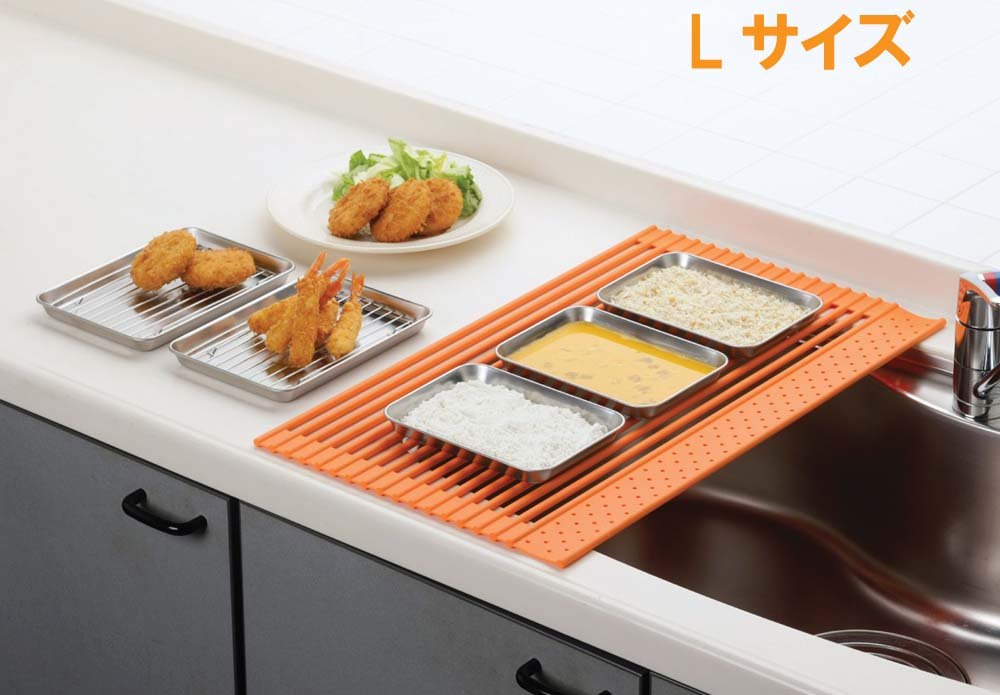 ● Standard, color, size: Width × depth × thickness (mm) ● M, Orange, 350 × 520 × 9 ● Material: Main body / Silicone rubber core material / Stainless steel Heat resistant temperature: About 220 ° C ● Vegetables after washing