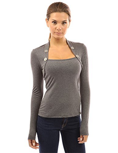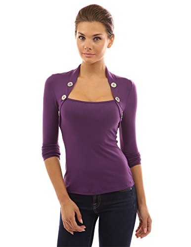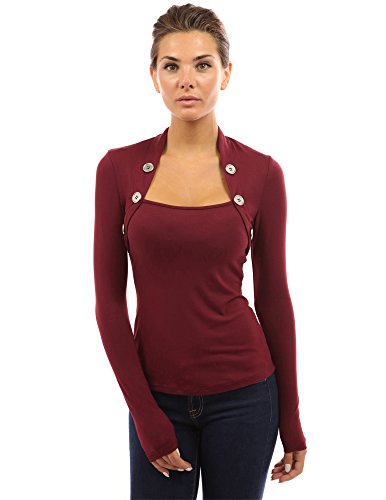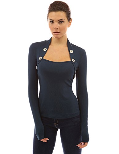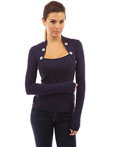 PattyBoutik Bolero Style Button Embellished Long Sleeve Party Blouse Top. Model in pictures is 5 feet 8 inches (173cm) tall wearing size S.