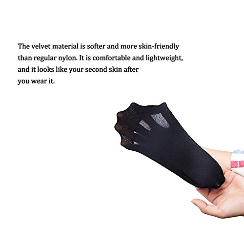 -. Feature : ULTRA LOW CUT SOCKS -ComP.R.Ising of high-quality velvet material. One size. Socks are meant to give you the comfort of wearing a footwear. The velvet material is softer and more skin-friendly than regular nylon. It is comfortable and lightweight, and it looks like your second skin after you wear it.Our no show socks have super elastic and fit most women's feet. / SUPER COMFORTABLE DESIGN AND MORE DURABLE - Made of Premium velvet material which keep your feet breathable and comfortable! Go casual, comfort and stealth with our no show socks. They are designed to mold to your feet and provide the most comfort for you. No show liner socks stay hidden underneath your stylish footwear that you want to show. / PREVENT SLIPPING AND KEEP ELEGRACE - We know women's fashion well.The slipping of socks often causes the heel to rub on the heel, which is very painful. So we made a further upgrade in the heel of the sock, from 1 silicone strip to 3 silicone. Enhanced silicon grip on the heel prevents these socks from slipping. While maintaining a comfortable state of wearing, it will ensures the elegance of women. / MOISTURE WICKING AND ANTI-BACTERIAL - Wear it for hours in extreme conditions without feeling bothered sweaty feet. These no show loafer socks will keep your feet fresh, odor-free and cool all day long. Long lasting and machine washable. You can say goodbye to this annoying problem from now on. Wearing our near invisible socks, you will definitely enjoy the feeling of casual stealth with comfort. / SATISFACTION GUARANTEED - Shop with confidence. Your satisfaction is our top most P.R.Iority. If you do not like our socks for any reason, we offer a full refund or free replacement.