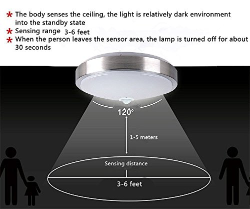 Built-in Body motion sensor, auto switch, only allows the motion sensor ceiling light to be activated on when the people get closed to it(14-16feet), Auto-off after 30 seconds of no motion detected, more intelligently.