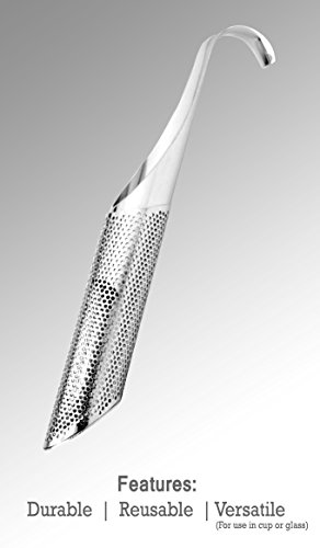 Love loose tea but do not want sediment floating in your cup or pot? Love using infusers but disappointed with the quality and durability? Bored with traditional teaware and want to enhance your tea experience? Introducing your very own Sleek Tea Infuser Stick, Steeper, Strainer, made of Stainless Steel for Loose Leaf Tea, by the Tea Commission An ideal 'have tea anywhere' infuser made with Stainless Steele.. This infuser allows tea leaves to expand and provide full infusion of the leaves. Not only is it Eco Friendly, it is convenient and portable for wherever, and whenever, the mood strikes. The ideal tool for enjoying a cup of medium to large loose leaf tea. Perfect for tea parties, high tea or any occasion that comes to mind. An ideal gift which is not only beautiful but also functional. Our Guarantee: If you have any issues with your Tea Infuser from Tea Commission, just contact us and we will make it right. WE cannot guarantee this special pricing for long, so BUY NOW! 0 |