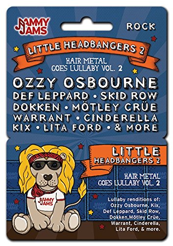 Download Cards are a perfect way to give a Jammy Jams record inside of a baby shower card, no need to gift-wrap a CD. Prefer to play lullabies to your child on an iPod or iPad? Skip the hassle of importing the CD. Each Jammy Jams digital download card contains a unique code that enables you to download MP3s to your computer and sync with any mobile device.Have you experienced the "Hysteria" that comes when you try and get your little one to sleep and all she wants to do is jump or play? Do you ever take a "Shot in the Dark" and just lay her down in the crib with your fingers crossed? Not working? Then try playing her hair metal- lullabies that is. Little Headbangers 2: Hair Metal Goes Lullaby Vol. 2. includes soothing, peaceful and comforting versions of songs originally performed by Ozzy Osbourne, Cinderella, Def Leppard, Motley Crue and other metal giants. Check out Little Headbangers 2: Hair Metal Goes Lullaby Vol. 2 and rock some Zzzzzs tonight. For additional variety, also check out Little Headbangers: Hair Metal Goes Lullaby Vol. 1.
