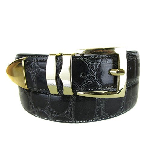 -. Title : BLTBY-ALGG-26 - Charcoal - Boys Alligator Skin Bonded Leather Belt