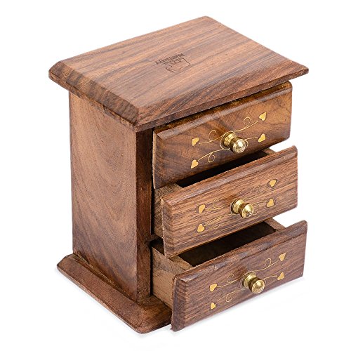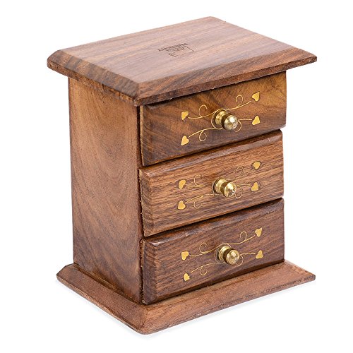 Studio : Rusticity Publisher : Rusticity Binding : Kitchen Product Description When it comes to essentials, one barely has time to pay attention to details. However, that shouldn't stop you from decorating your home with items which hold great utility but also comes with an aesthetically pleasing design. The Rusticity Wooden Cabinet with 3 drawers is a small an adorable piece of furniture, with a rich brown and red hue from the Indian rosewood, and its speciality lies in the baroque hand-carvings which are the outcome of months of passionate hard work by rural artisans from remote villages in India. A perfect accessory to possess in your furniture collection.