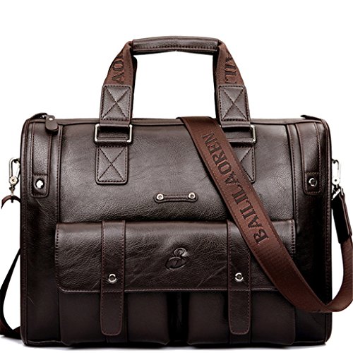 -. Title : Ruiatoo Men's Vintage Leather Multi-pocket Briefcase Laptop Shoulder Business Messenger Bags