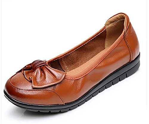 -. Feature : NOTE:The price just for promotion,you can't go wrong with this quality at a great price.The size have been adjusted to be more appropriate,please choose the size according to the size chart in pictures. / Top Grain Genuine leather upper, help reduce foot odor and wick moisture to keep the foot dry. / Ultra flexible rubber outsole,it can effectively help reduce stress, pain, fatigue.They are ideal shoes for someone should stand a lot or walk long time in work. / Elasticized topline ensures a great fit. / Simple but classic ballet flat, easy to match clothes.Great for both casual and formal ocassion, shopping, work, daily walking.