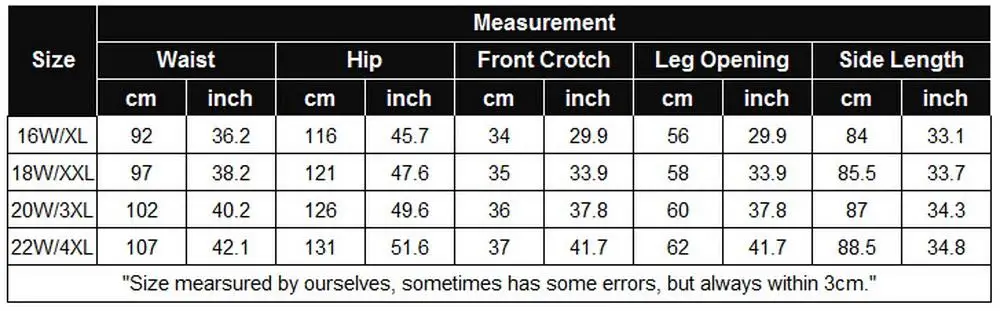 Size:16W, 18W, 20W, 22W(XL,XXL,3XL,4XL)