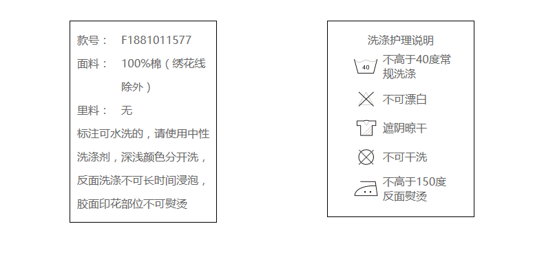 100%棉(绣花线除外)