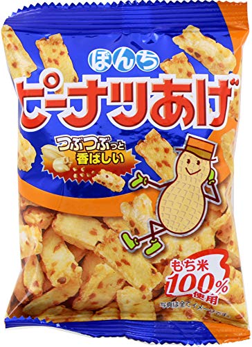 原材料:もち米(国内産、米国産)、植物油脂、ピーナッツ、食塩、砂糖、かつおだし粉末、昆布粉末、チキンコンソメシーズニング(小麦・大豆・鶏肉を含む)/調味料(アミノ酸等)、香料