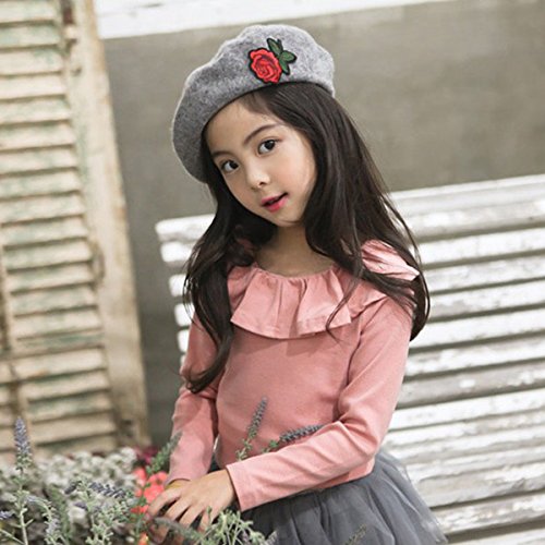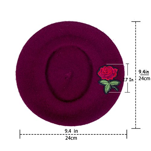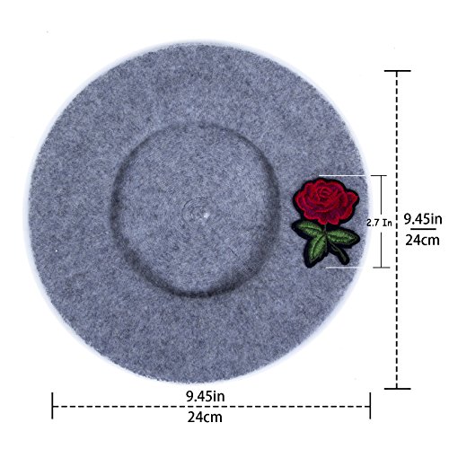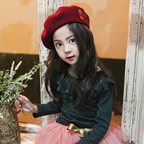 Binding : Apparel Product Description Information: AWAYTR Fashion Girls Rose Applique Wool French Beret Feature: Material: Wool Gender: Child or Girls Season: Autumn or winter Size: cap 9.4" x 9.4"(L x W) ; Rose Applique:2.7" x 2" (L x W) ; Circumference: 16.5'-19'(one size fits most) Notice: * The actual color may vary slightly from the online image due to monitor color settings. * Please allow slight measurement deviation for the data.