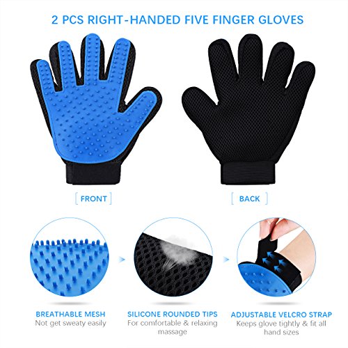 Multifunctional Pet Grooming Gloves: These 2 pack Right-Handed gloves can be used as bathing brush, deshedding, massaging, hair remover tool, do well in removing long, short and curly loose pet hair, keep your house clean and pets healthy.