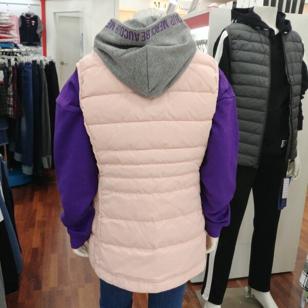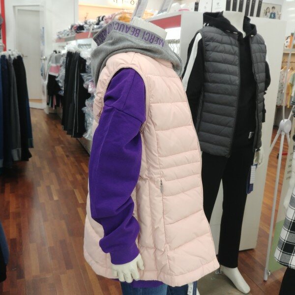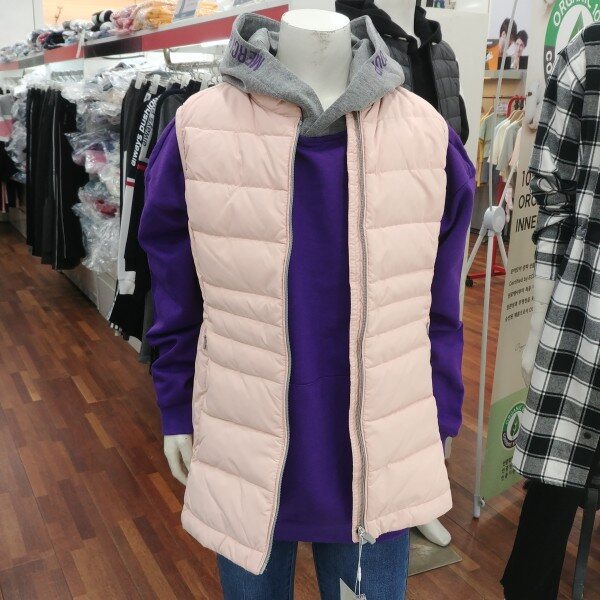 초경량 구스 조끼입니다.은은한 핑크톤이 고급스럽습니다.남방 블라우스 후드..어디에나 잘 어울립니다.혹한기엔 이너조끼로 활용하셔도 좋습니다.