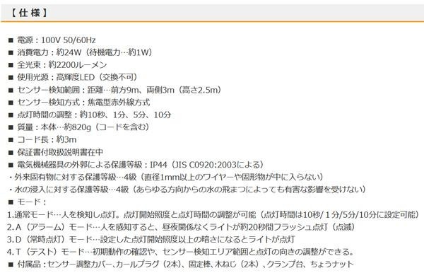 | センサー機能をお好みのモードに設定できます。お客様のお出迎えや防犯対策、常時点灯で夜間の作業などにオススメです。付属のクランプで取り付けも簡単にできます。付属のセンサー調整カバーで検知範囲を縮小できます。 |