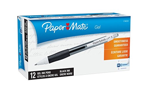 -. Title : Paper Mate Retractable Gel Pens, Medium Point, Black, Box of 12