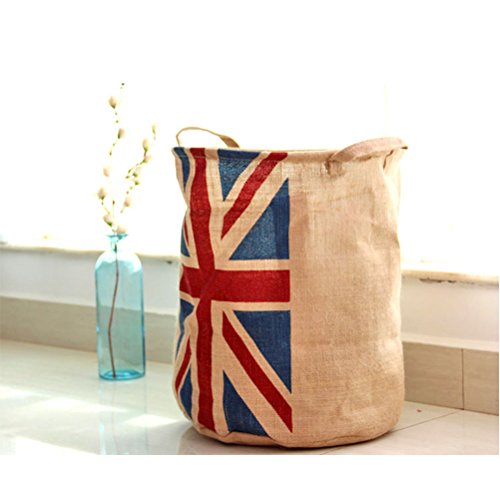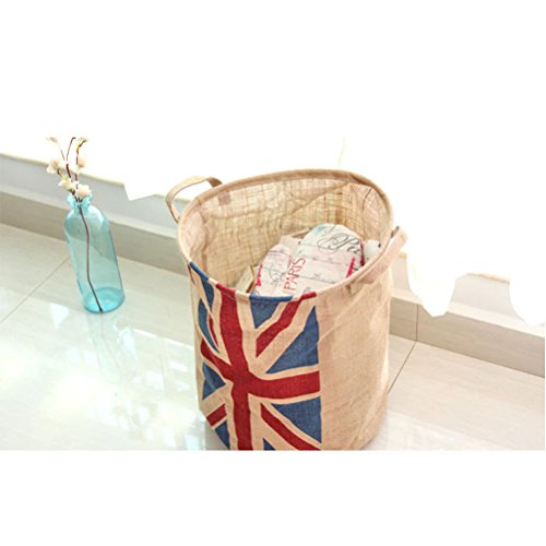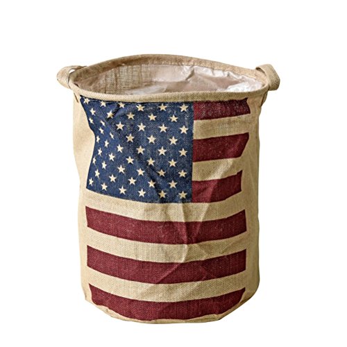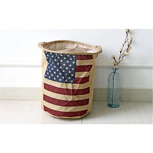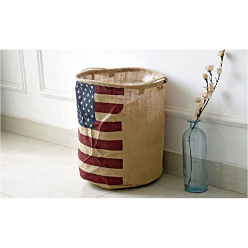 -. Title : Yiuswoy Collapsible Vintage Burlap Storage Bucket With Flag Design Laundry Basket Dirty Clothes Hamper Storage Bin Storage Basket Organizer For Kid's Room Toy Storage