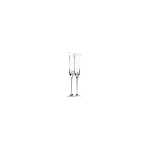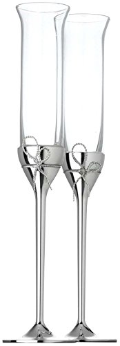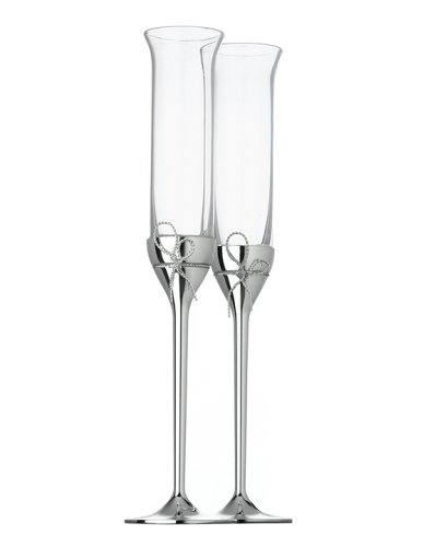 Product Description Hand-blown glass and silver Love Knots come together to create the elegant flute pair from the Vera Wang Love Knots collection. The slender design features a silver-plated base accented with a delicate bow.