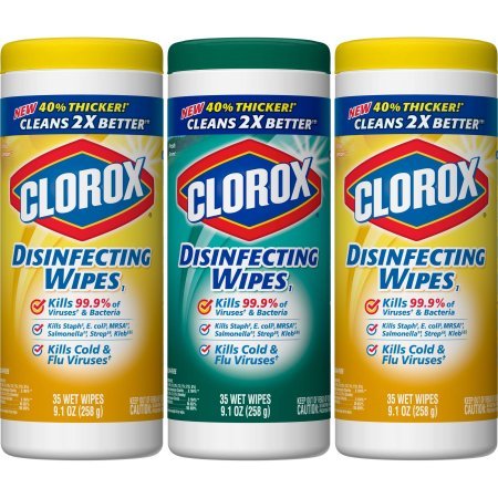 -. Feature : VALUE 3 PACK: This bulk wipe pack contains three 35 count canisters of disinfecting wipes in 2 scents featuring 1 Fresh Scent and 2 Crisp Lemon / ANTIBACTERIAL WIPES: Clean and disinfect with a powerful multipurpose wipe killing 99.9% of bacteria and viruses and remove common allergens around your home / MULTI-SURFACE CLEANER: Now 40% thicker* with 2x the cleaning power*, these wipes breakdown grease, soap scum and grime so you can tackle any surface. *Compared to previous wipes / SCENTED DISINFECTING WIPE: Disinfect and deodorize with the fresh smell of Clorox scented wipes for a bleach-free, all-in-one cleaning alternative / ALL PURPOSE WIPE: Germs and messes occur on more than kitchen counters and bathroom surfaces - safely wipe down toys, remotes, or clean up car spills