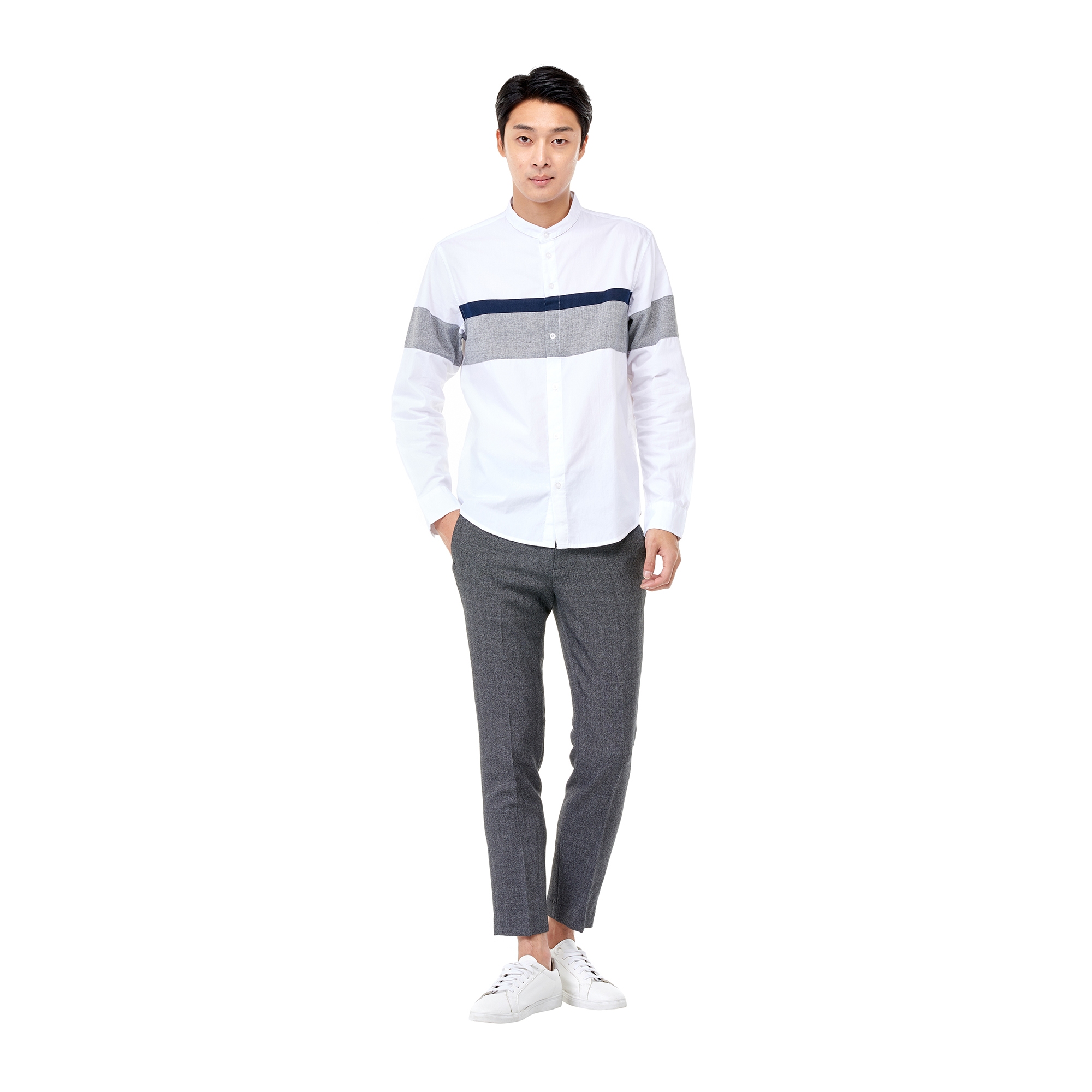 컬렉션 : 2017 Fall/Winter 디자인 포인트 : - 가로 블록 디테일이 돋보이는 캐주얼한 무드의 셔츠- 헨리넥 디테일로 깔끔한 느낌을 주는 디자인- 면 소재로 부담없이 스타일링 가능한 아이템 스타일링 추천 : 베이직한 치노 팬츠 혹은 슬랙스 팬츠 등의 아이템과 매치하여 심플한 데일리룩 스타일링을 연출 할 수 있음