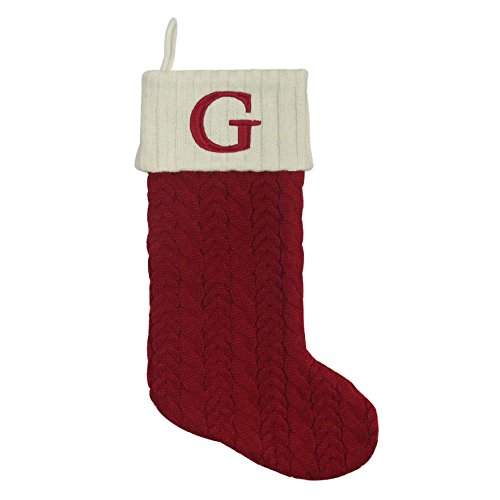 St. Nicholas Square 21-inch Monogram Embroidered Initial Cable Knit Red Christmas Holiday Stocking Letter G