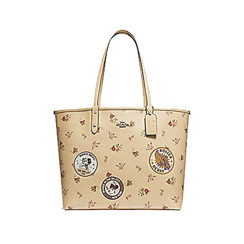 COACH REVERSIBLE CITY ZIP TOTE WITH FLORAL MIX PRINT AND MINNIE MOUSE PATCHES F29359, VANILLA MULTI/SILVER