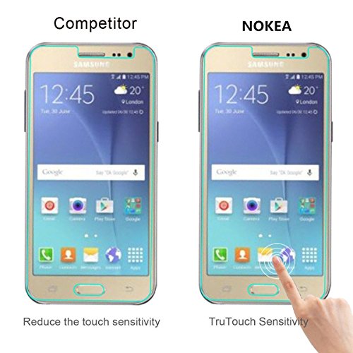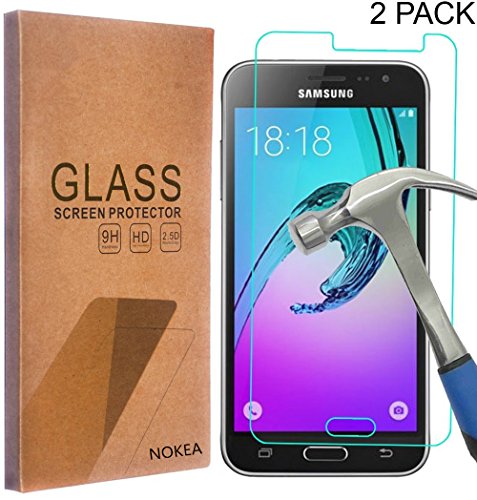 [2 Pack] Samsung Galaxy J3 / Galaxy J3 (2016) Screen Protector, NOKEA [Tempered Glass] with [9H Hardness] [Crystal Clear] [Easy Bubble-Free Installation] [Scratch Resist] (for Galaxy J3 (2016))