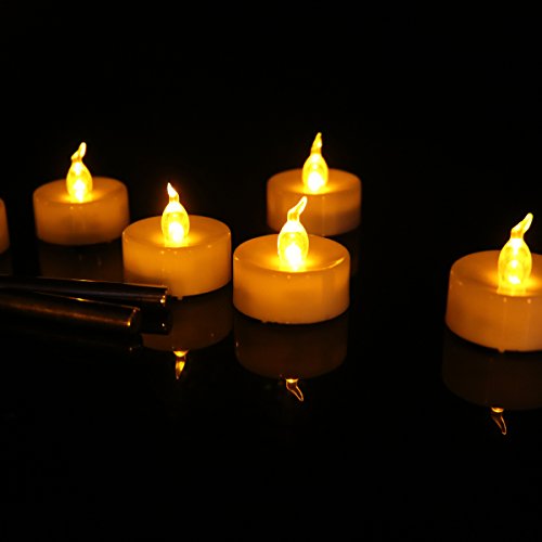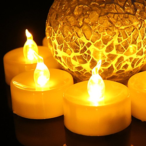 Horeset 12pcs Flameless Candles Yellow Flickering LED Tealights With Timer, 6 Hours On and 18 Hours Off in 24 Hour Cycle, Battery Candles Operated for Wedding, Birthday, Party Decorations