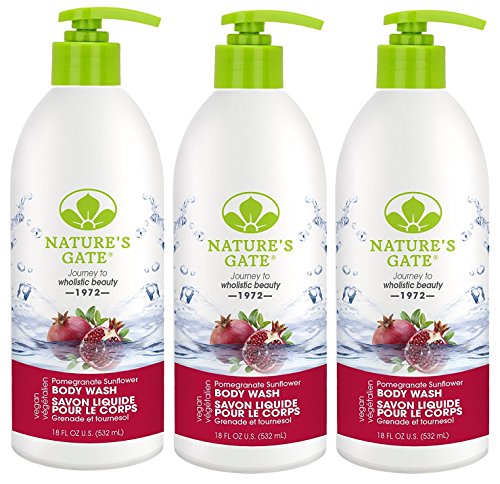 Nature's Gate Pomegranate Sunflower Velvet Moisture Body Wash - 18 Ounces (Pack of 3) -- Nature's Gate Pomegranate Sunflower Body Wash features an exclusive blend of ultra hydrating ingredients of Shea Butter, Almond Oil, Soybean Oil, Apricot Kernel Oil, and Vitamin E that work together to help replenish skin's natural moisture barrier. Skin is left soft, smooth and supple. Pump a generous amount onto washcloth, sponge or pouf. Lather. Rinse thoroughly. Follow with your favorite Nature's Gate Lotion. Vegan, Gluten Free, Paraben Free, Sulfate Free, Phthalate Free, No EDTA, and Cruelty Free.Feature