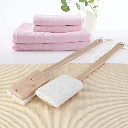 Package Including 2 * Natural Loofah Bath Brush with Long Handle