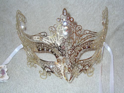 -. Title : Gold Laser Cut Metal Cat Venetian Masquerade Carnival Mask