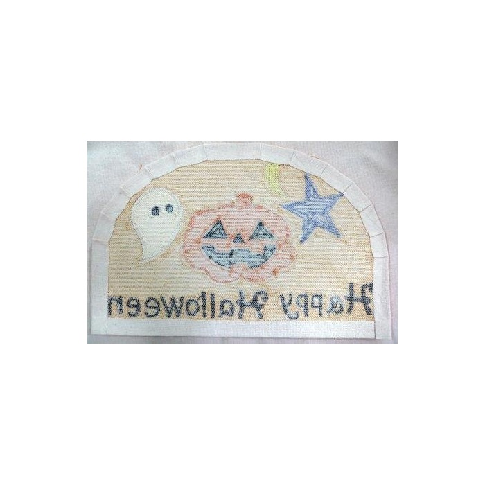 미야자키 융단 주식회사 이니셜 매트 45×70cm 【해피 할로윈 반원】세계에 1매의 명(이름) 만들어 넣음(담는 그릇·상자 등) 할로윈 현관 매트(수주 생산)