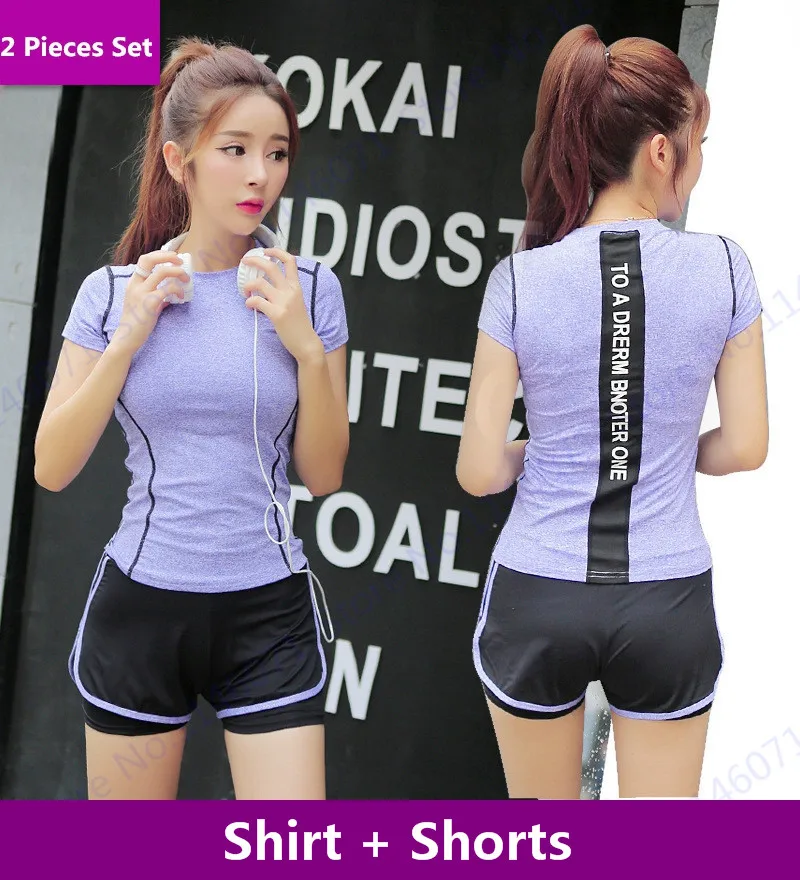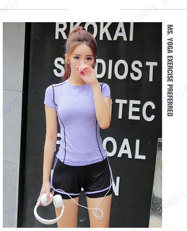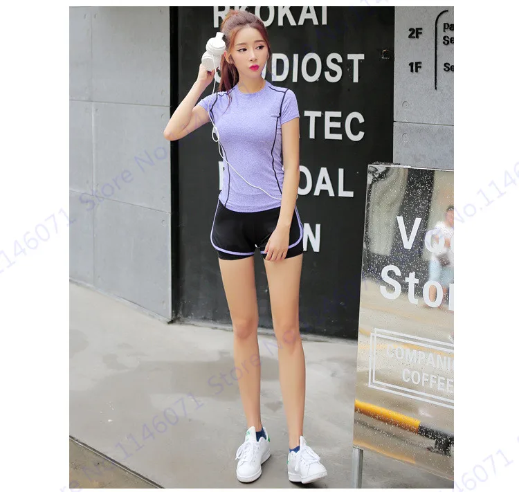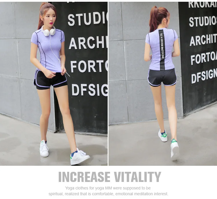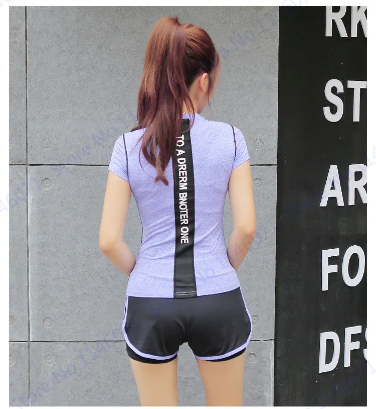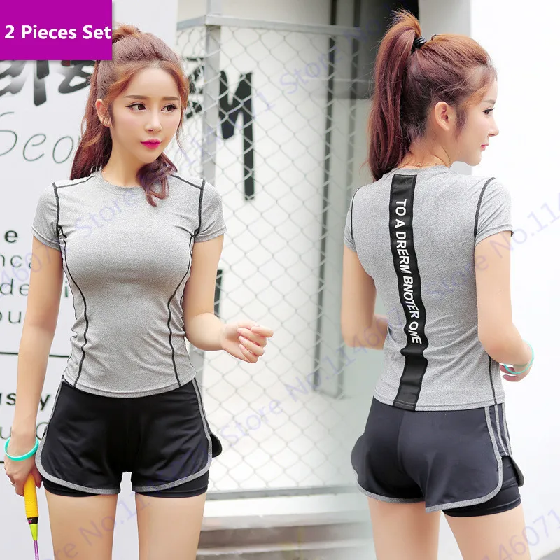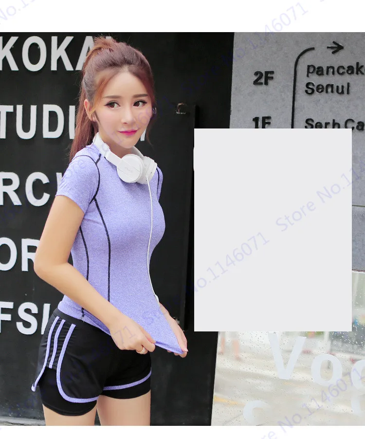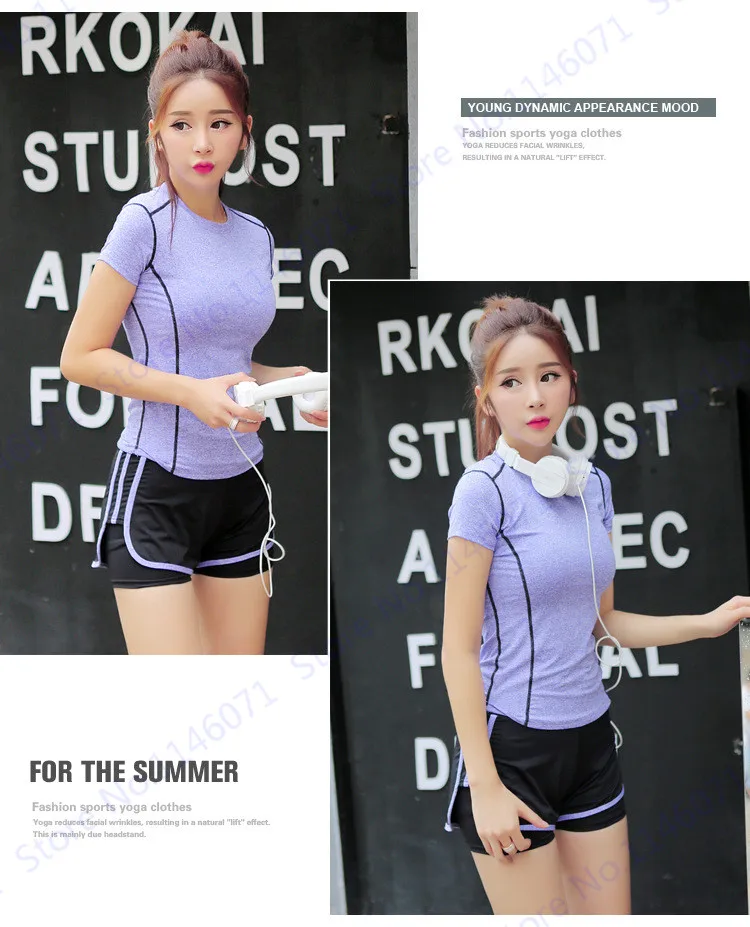 Feature 3:Grey Short Sleeves Shirt & Shorts Tracksuit 2016 Women Sport Yoga Sets