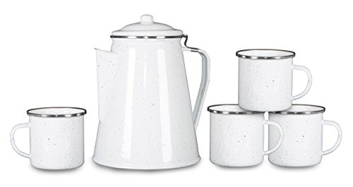 STANSPORT 11230-03 Enamel Percolator Coffee Pot & 4 Mug Set