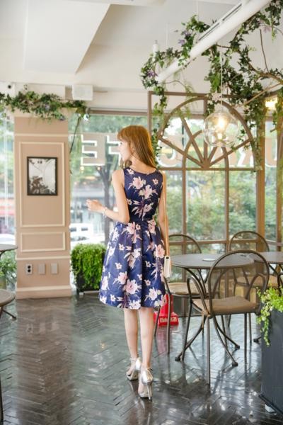 ★上品なブルーの 花柄ノースリーブワンピースです♪