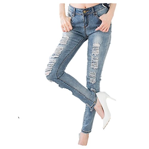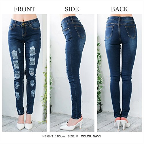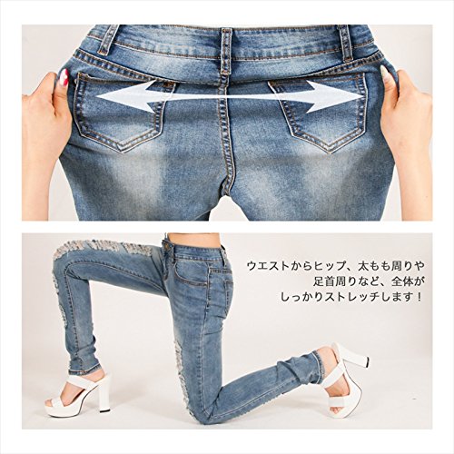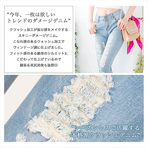 -. Title : レディースファッション通販 パンツ デニム 【2016 春夏】 クラッシュデニム ジーンズ ダメージ ストレッチ フィット 美脚脚長 ベーシック シンプル 人気 流行 セクシー オシャレ ネイビー ブルー ライトブルー