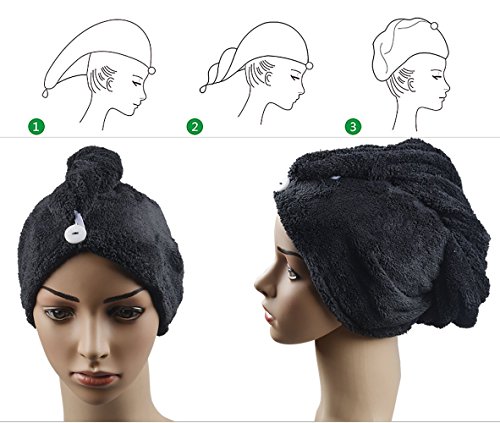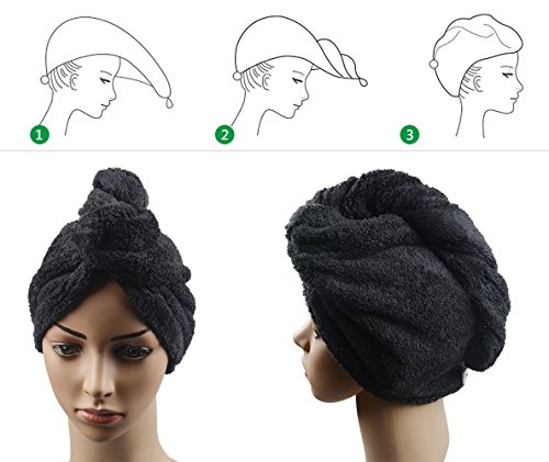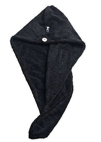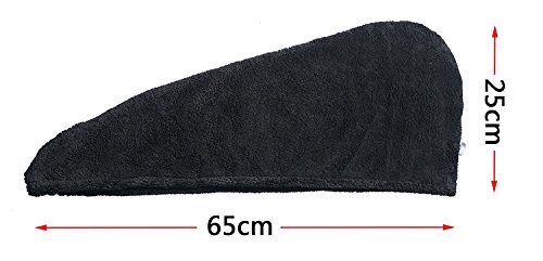 Ultra Absorbent Microfiber Twist Hair Turban Dry Cap Bath Head Wrap Hair Wrap Cap (10"x26", Black)