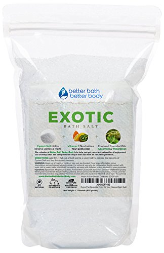 New Exotic Bath Salt 32oz (2-Lbs) - Epsom Salt Bath Soak With Spearmint & Wintergreen Essential Oil Plus Vitamin C - Aromatherapy Bath...