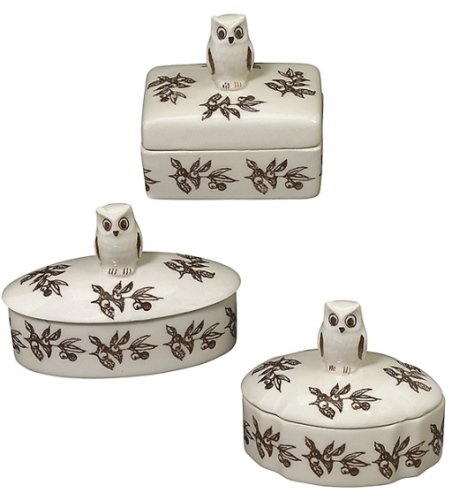 Brown and White Owl Trinket Boxes Assorted Set of 3 Andrea by Sadek