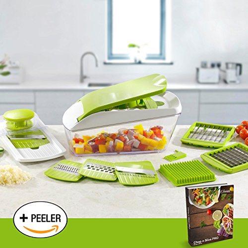 Chop 'n' Slice Pro - Mandolin & Chopper with Storage Lid - 7 Interchangeable Blades for Chopping, Slicing, Cutting, Dicing, Grating & Julienne Slicing - Perpetual Peeler and eBook included