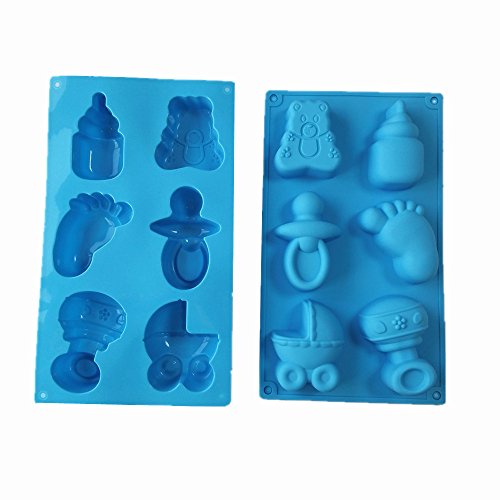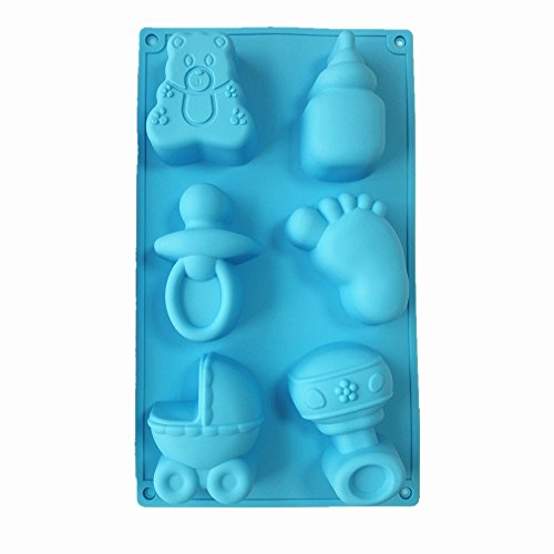 Yunko Baby Shower Party Pan Bear Carriages Bottle Feet Bear Silicone Soap Chocolate Cake Cookie Mold Pudding Jelly Mold,Assorted colors