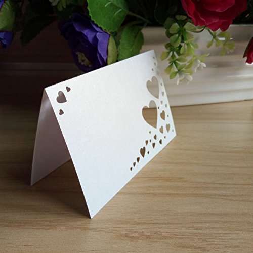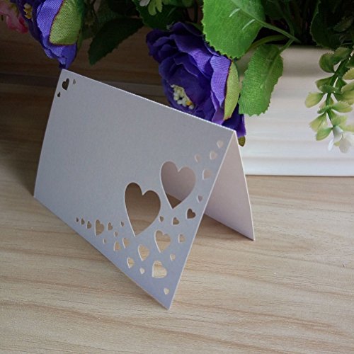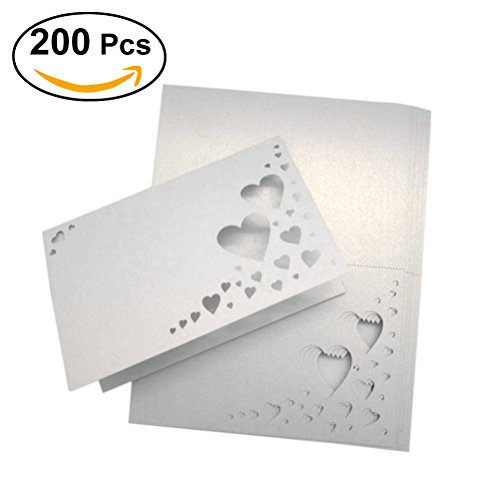 OULII Heart Hollow Name Place Cards Wedding Guest Place Cards Wedding Favors, pack of 200 (White)